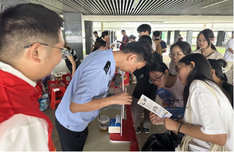 为进一步提升我校学生的防诈骗意识和能力,有效遏制校园诈骗案件的发生,2025年6月13日,我校“防诈知行工坊”辅导员工作室联合白云区反诈中心、钟落潭派出所及高职园区管委会,在图书馆架空层打造了一场集教育性和互动性于一体的防诈宣教活动。