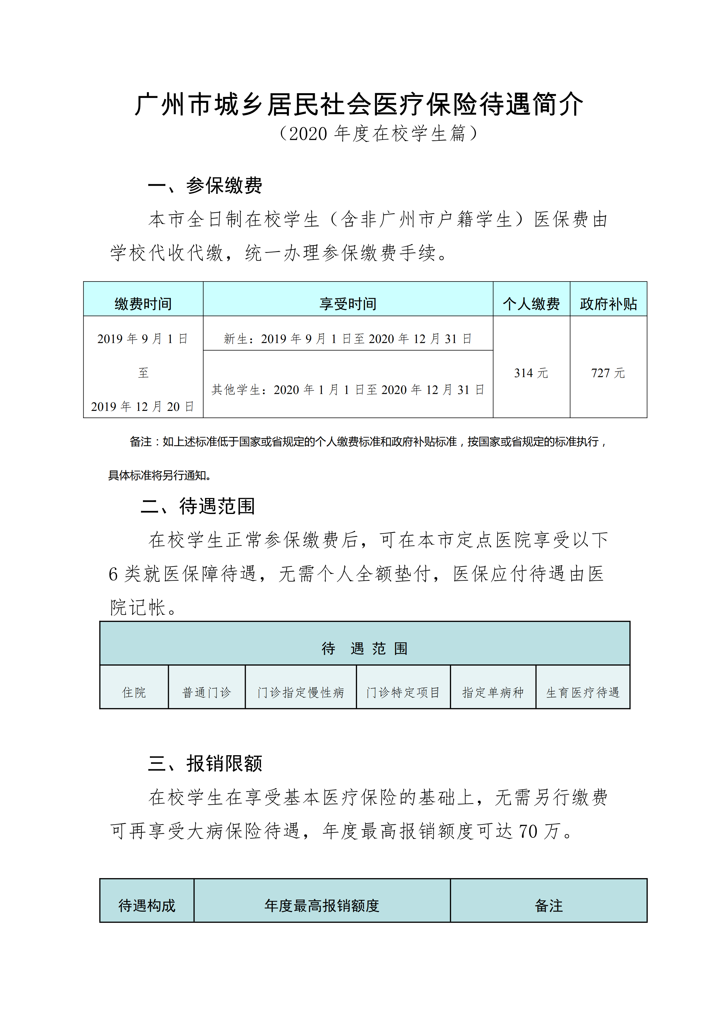 广州市城乡居民社会医疗保险待遇简介(2020年度在校生篇)