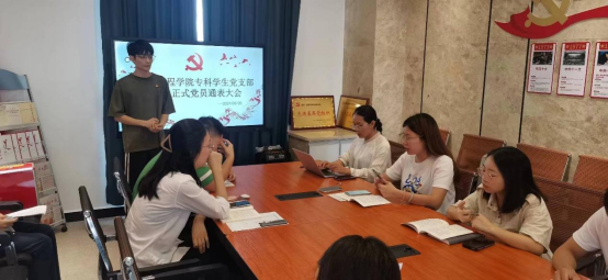 2024年6月20日,信息工程学院专科党支部于上午11:00在81517党员活动室召开预备党员转正大会,本次会议主要讨论是否接收江家杰、姚宇浩、邓金新三名预备党员同志是否转正,会议流程、内容严格按照党章规定执行。