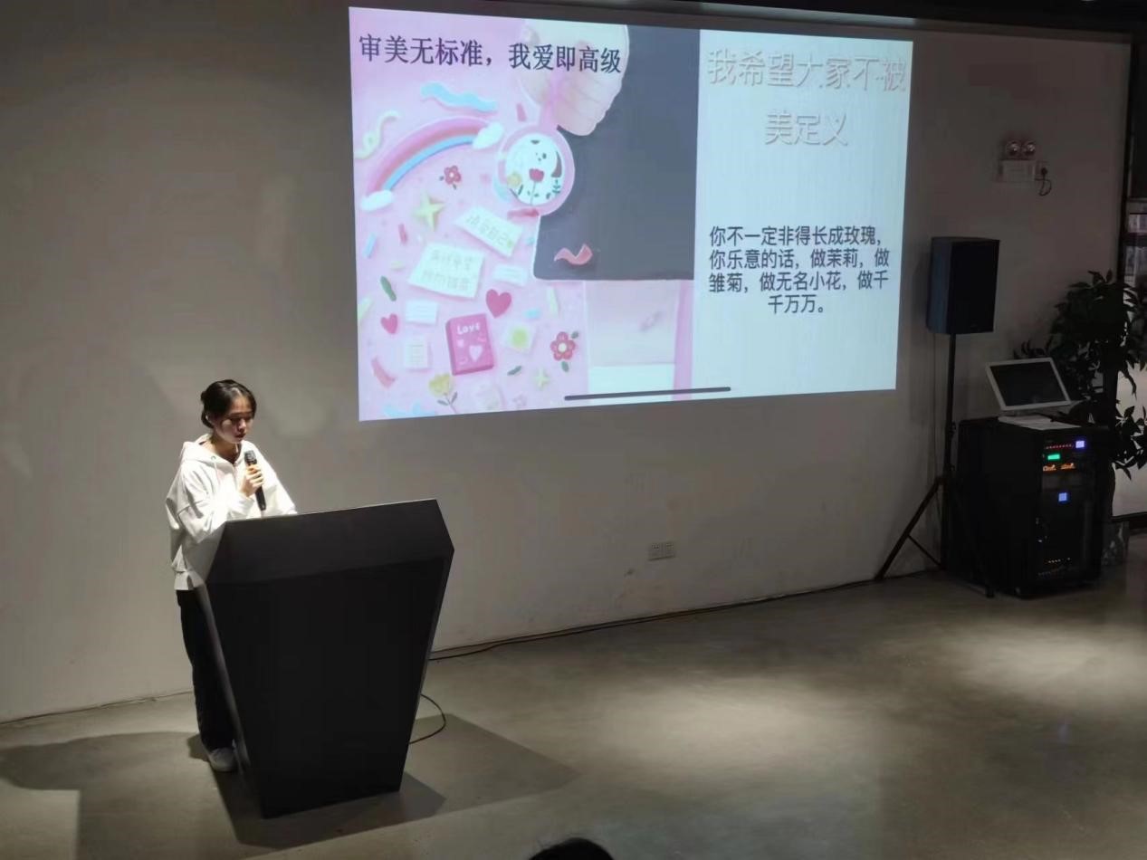 本场主讲学生罗文苑同学,为同学们带来的是主题演讲是“摆脱容貌焦虑”。