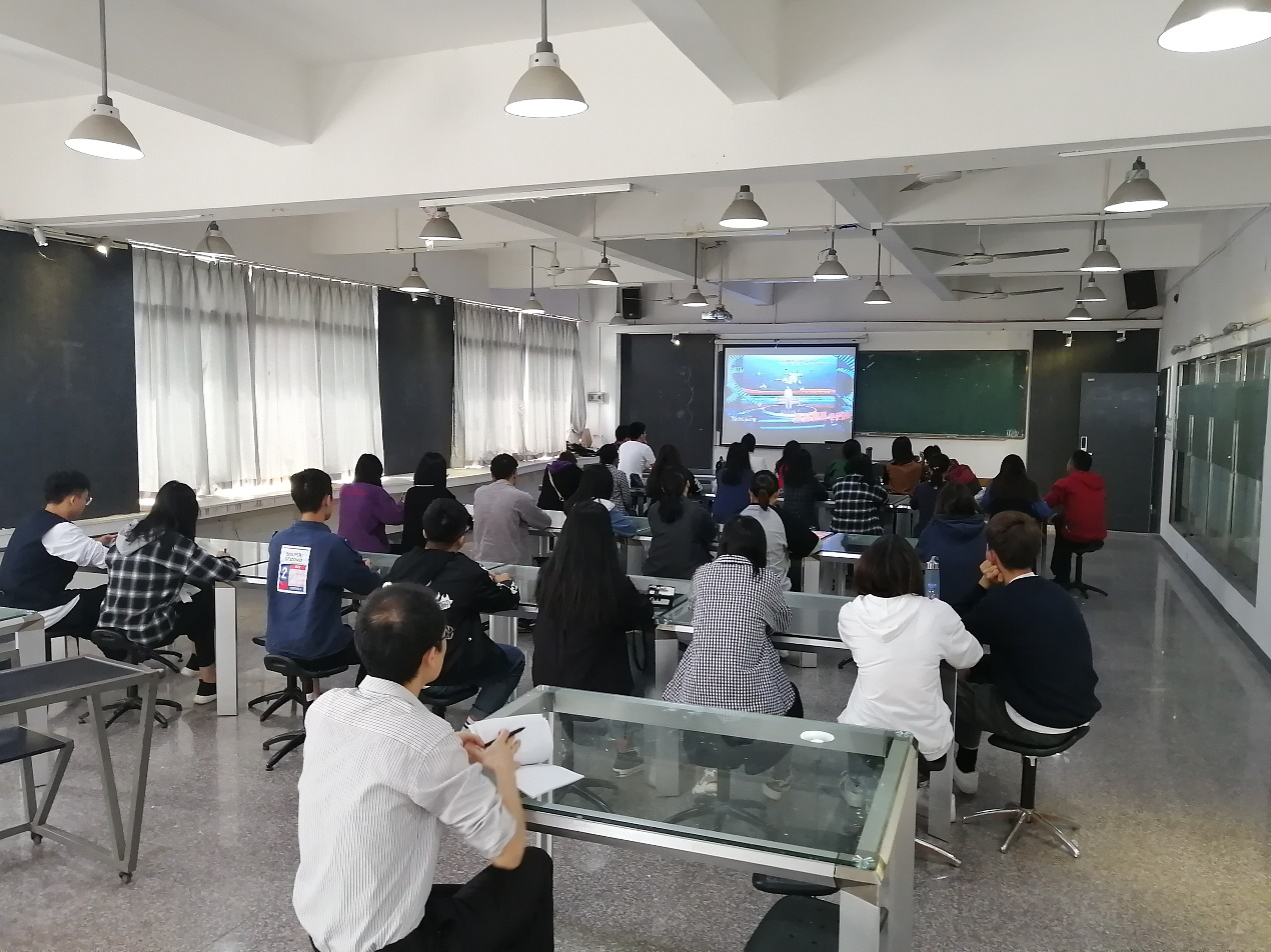 我院全体教师党员和积极分子于2019年10月25 日12点在7612教室集体观看“不忘初心、牢记使命”主题教育先进事迹报告会。学习了港珠澳大桥管理局总工程师苏权科、深圳市宝安区社会福利中心保育部副部长费英英、省农业农村厅驻雷州市那毛村党支部第一书记彭彬、等共产党员在港珠澳大桥建设、关心孤残儿童、脱贫攻坚、水稻遗传科学研究“一带一路”建设、社会平安建设等方面的先进事迹。