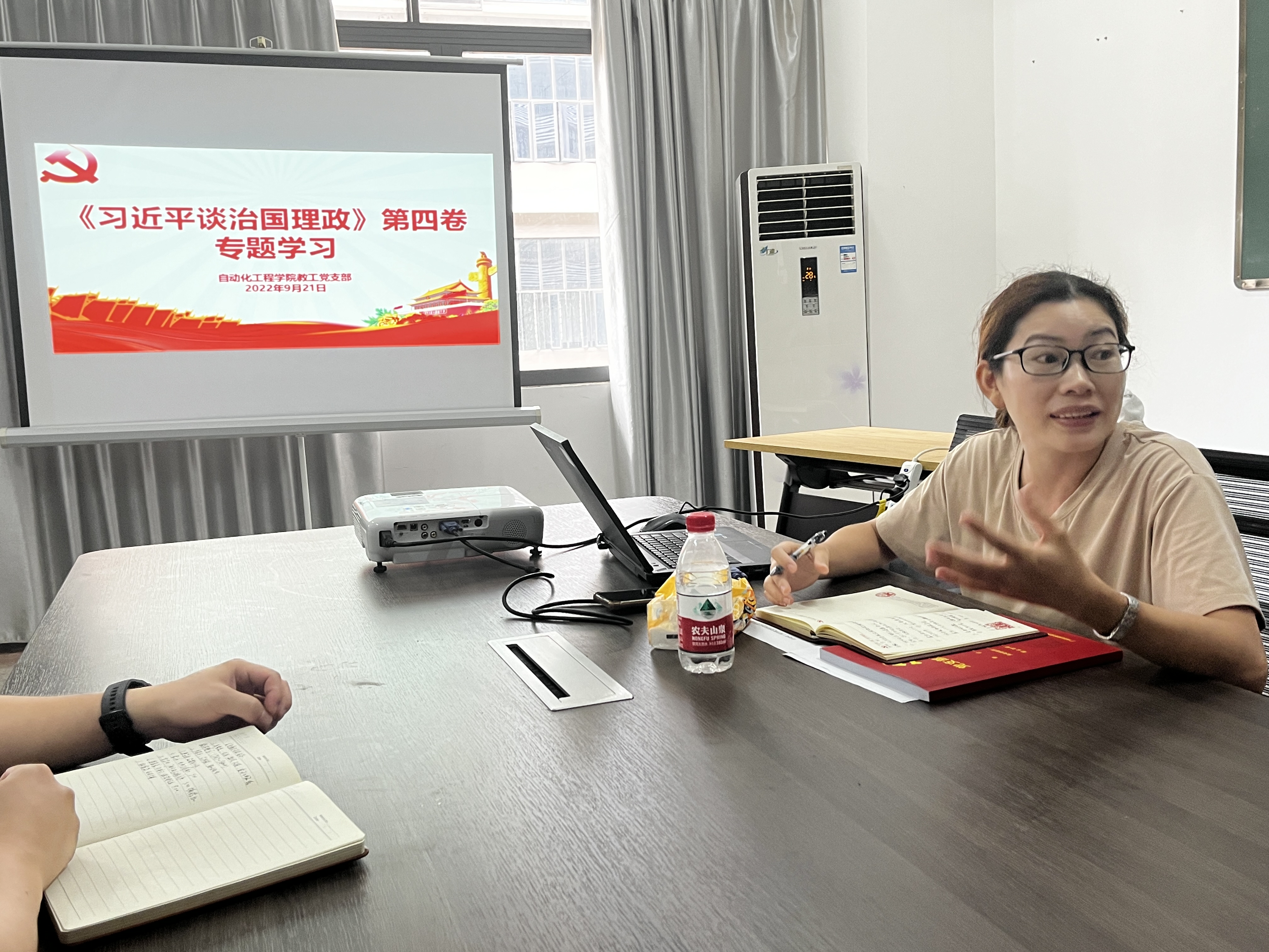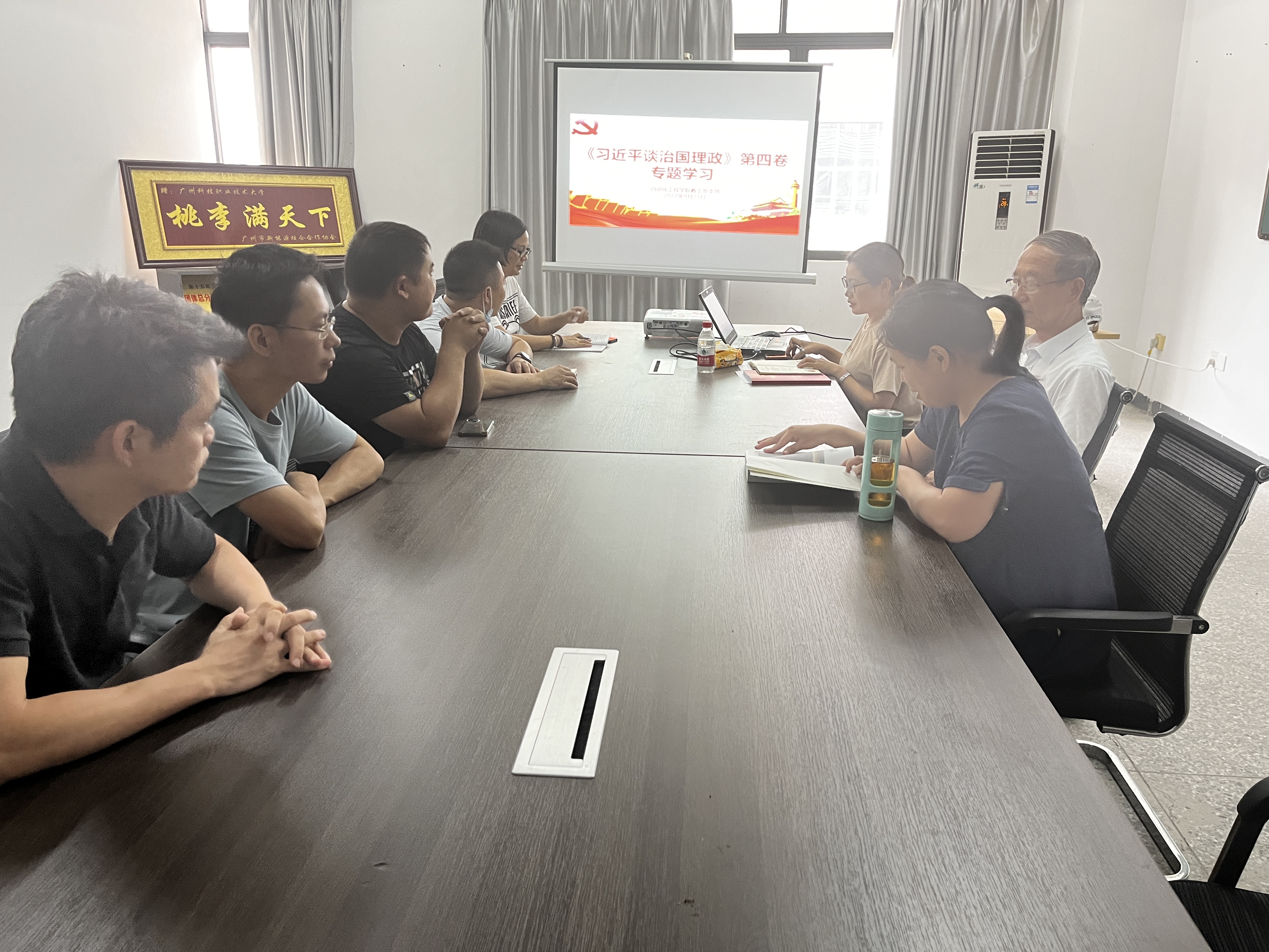 2022年9月21日星期三下午,自动化工程学院教工党支部全体老师在7313会议室召开《习近平谈治国理政》第四卷专题学习会。会议由支部书记麦明珠主持并发表讲话。