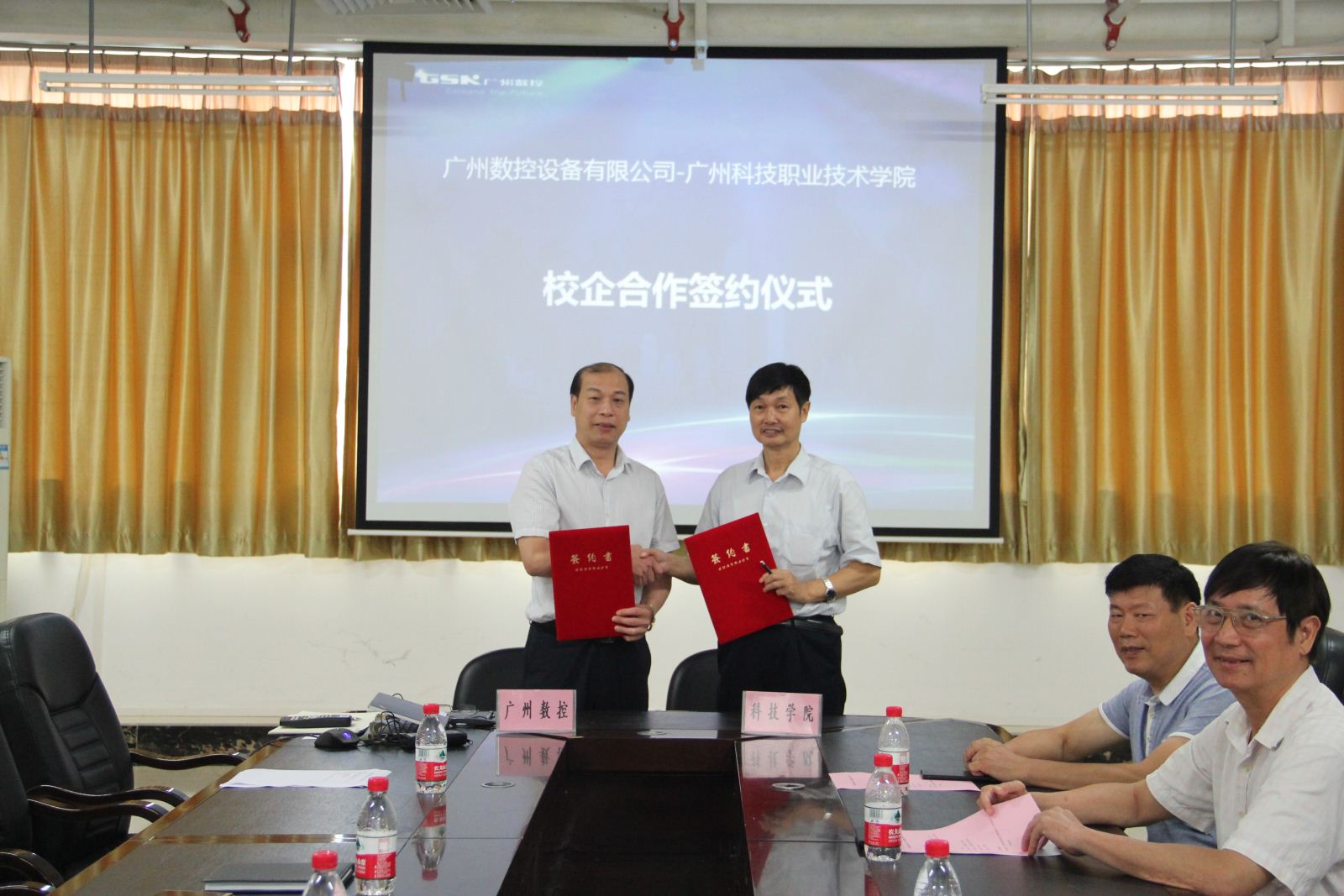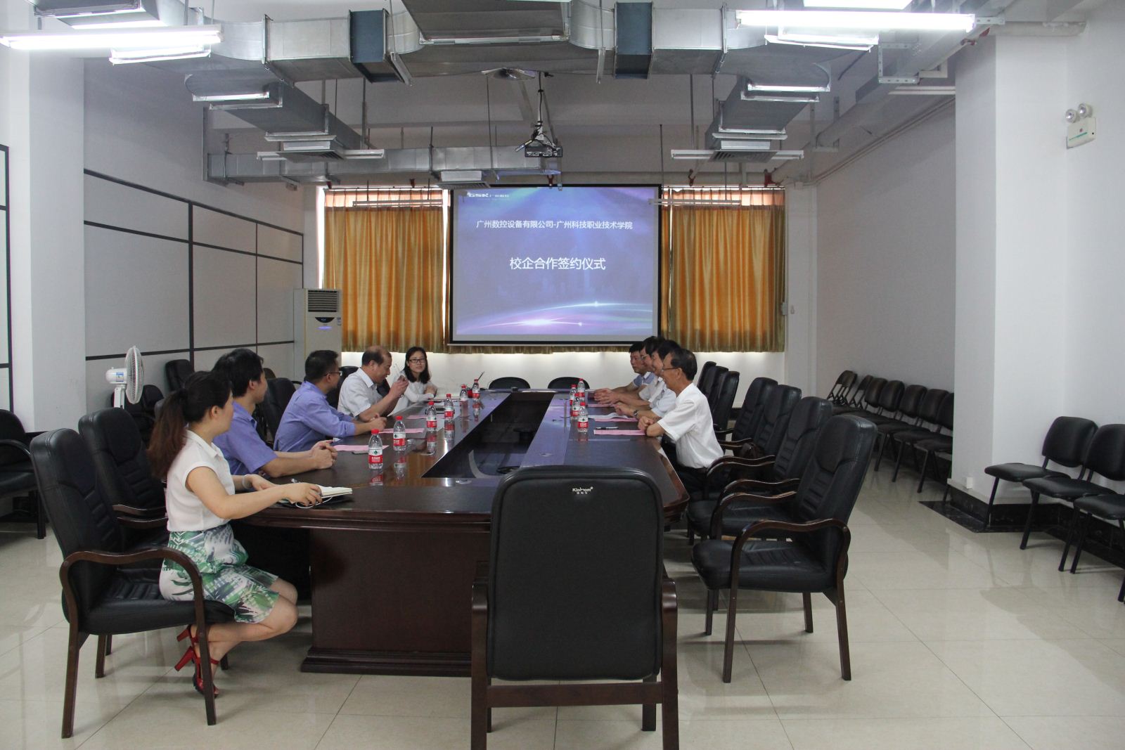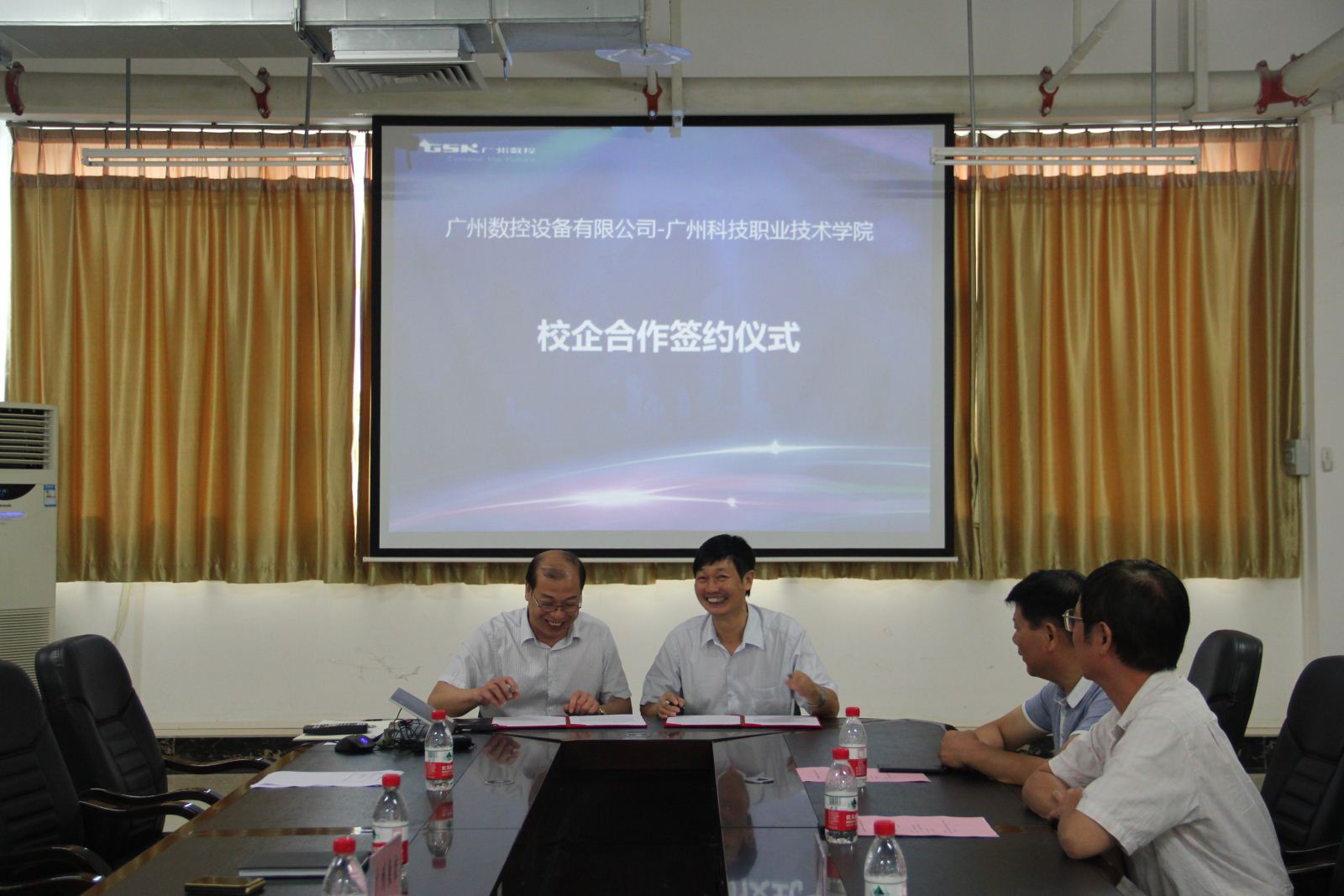 签约仪式在广州数控设备有限公司举行。参加此次签约的人有广州数控设备有限公司何敏佳董事长、李伟东院长、魏文峰经理、徐小琴主任助理,广州科技职业技术学院郧建国副院长、自动化工程学院高立义副院长、实训中心梁志强主任、就业处潘世华处长。