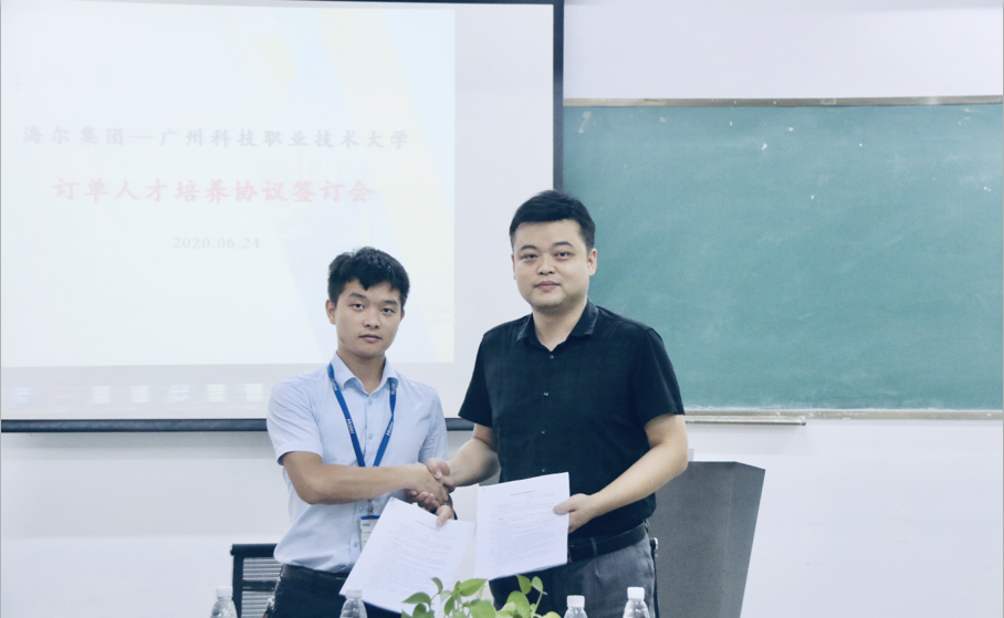 最后,在与会成员共同见证下,海尔集团人事部代表与张浩副校长签署了校企订单培养合作协议,并留照合影作为纪念。