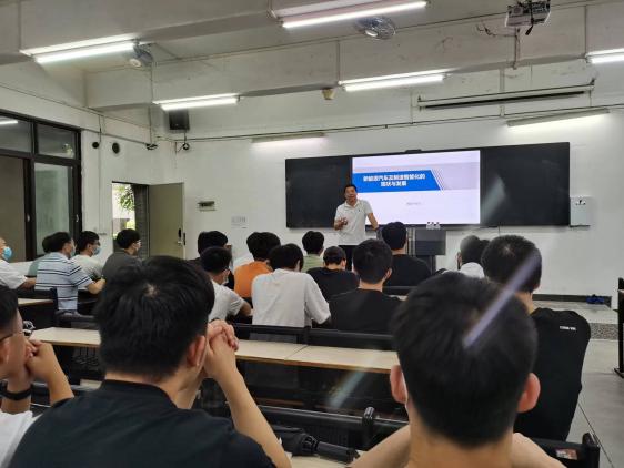本次讲座主要介绍了新能源汽车的现状与发展、新能源汽车制造智能化技术等内容。李树平副总经理饱含激情的讲解方式,不时赢得同学们的阵阵掌声,极⼤的提升了同学们的兴趣。其中李树平副总经理时不时与同学们展开互动,以加深同学们对讲座内容的理解,带动同学们的积极性。