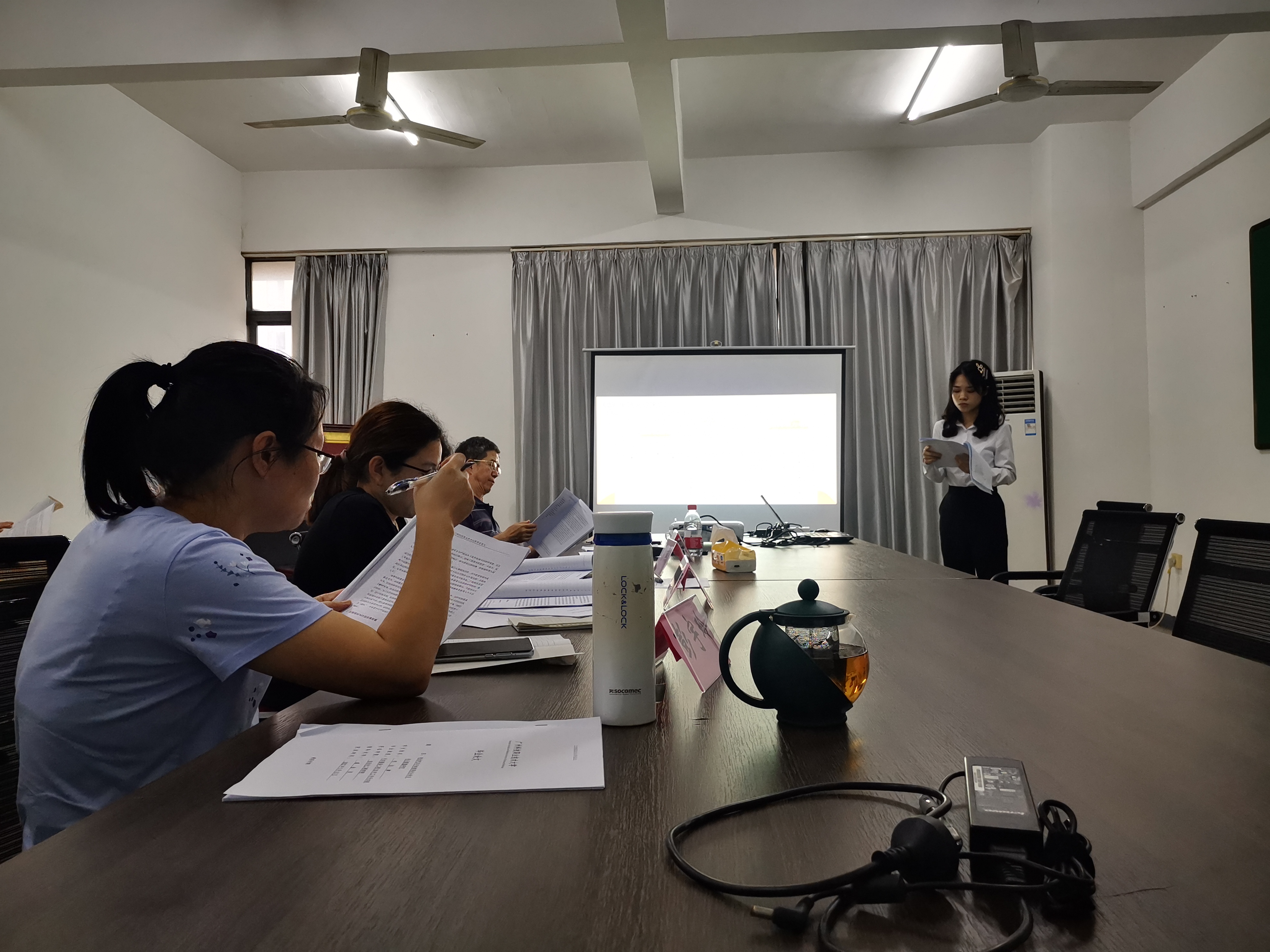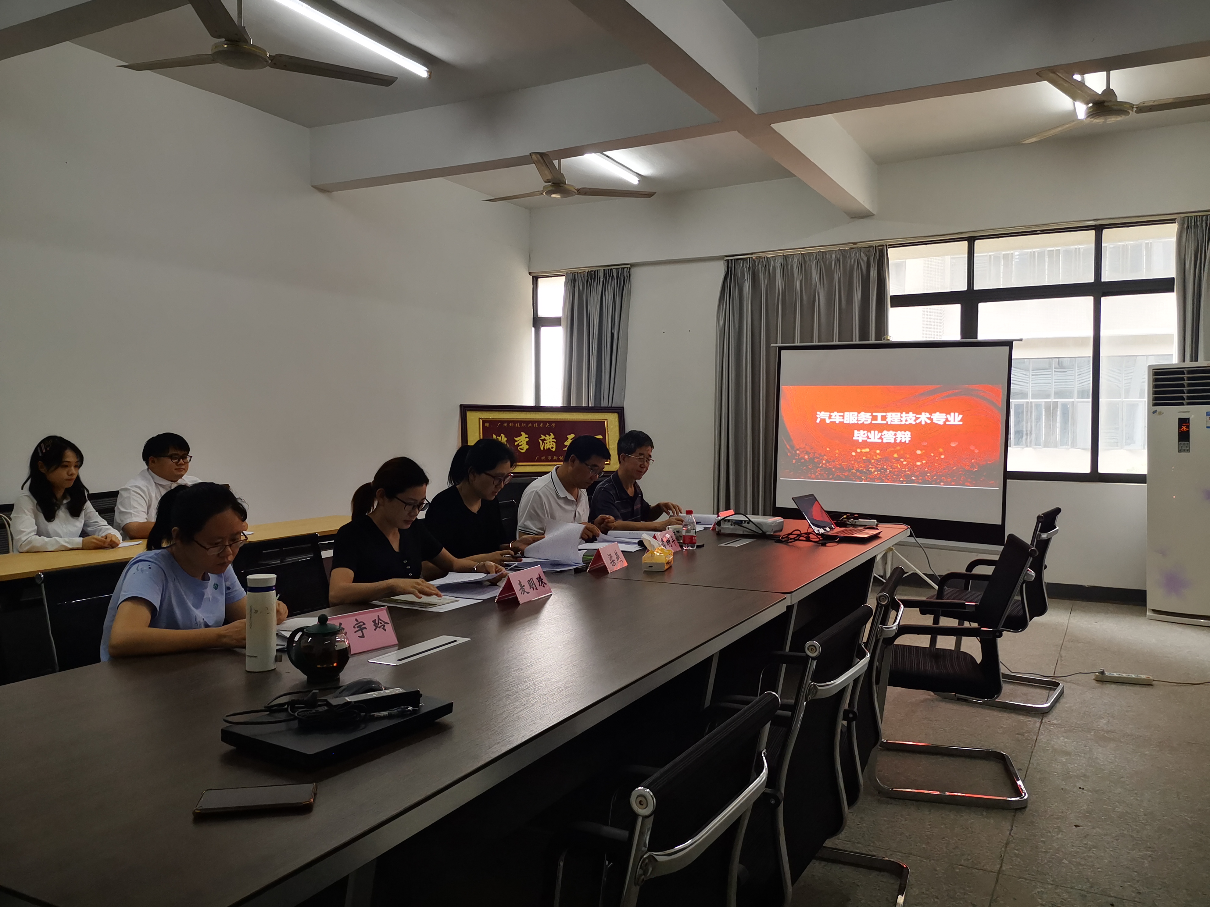答辩伊始,答辩组长向参加答辩的毕业生介绍了答辩流程,主要包括毕业生用PPT汇报论文主要内容情况和回答答辩老师提出的问题两个方面。答辩过程中,答辩老师就学生的论文内容和汇报情况,提出专业性问题,考察学生的专业知识和综合应用能力,并针对论文中存在的问题和不足提出了详尽的修改意见。答辩组依据评分标准,采取集中评议的方式对两名毕业生给出了客观、公正的答辩成绩。整个答辩流程规范严谨,在全体老师和学生的共同努力下,本次答辩会顺利完成。