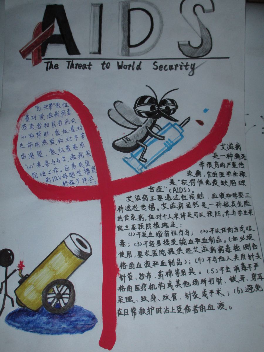 世界卫生组织于1988年1月将每年的12月1日定为世界艾滋病日,号召世界各国和国际组织在这一天举办相关活动,宣传和普及预防艾滋病的知识。本此宣传活动由我系学生会主办,活动当天,我系将由彩带编织成的红丝带贴至小树上,并将宣传画报摆置活动大本营,同学们通过扎气球答问题的方式来对全院学生宣传普及艾滋病知识,收到全院师生的一致好评。另外我系还与艺媒系共同合作,通过以滑稽通俗易懂的漫画展的方式进一步开展艾滋病宣传普及活动,活动兴致而不失意义,充分体现了我系对宣传日的重视。活动在大家的集体签名横幅中结束。据悉本次艾滋病漫画展讲持续至12月初,旨在让全院师生给予艾滋病患者以关怀与爱心。