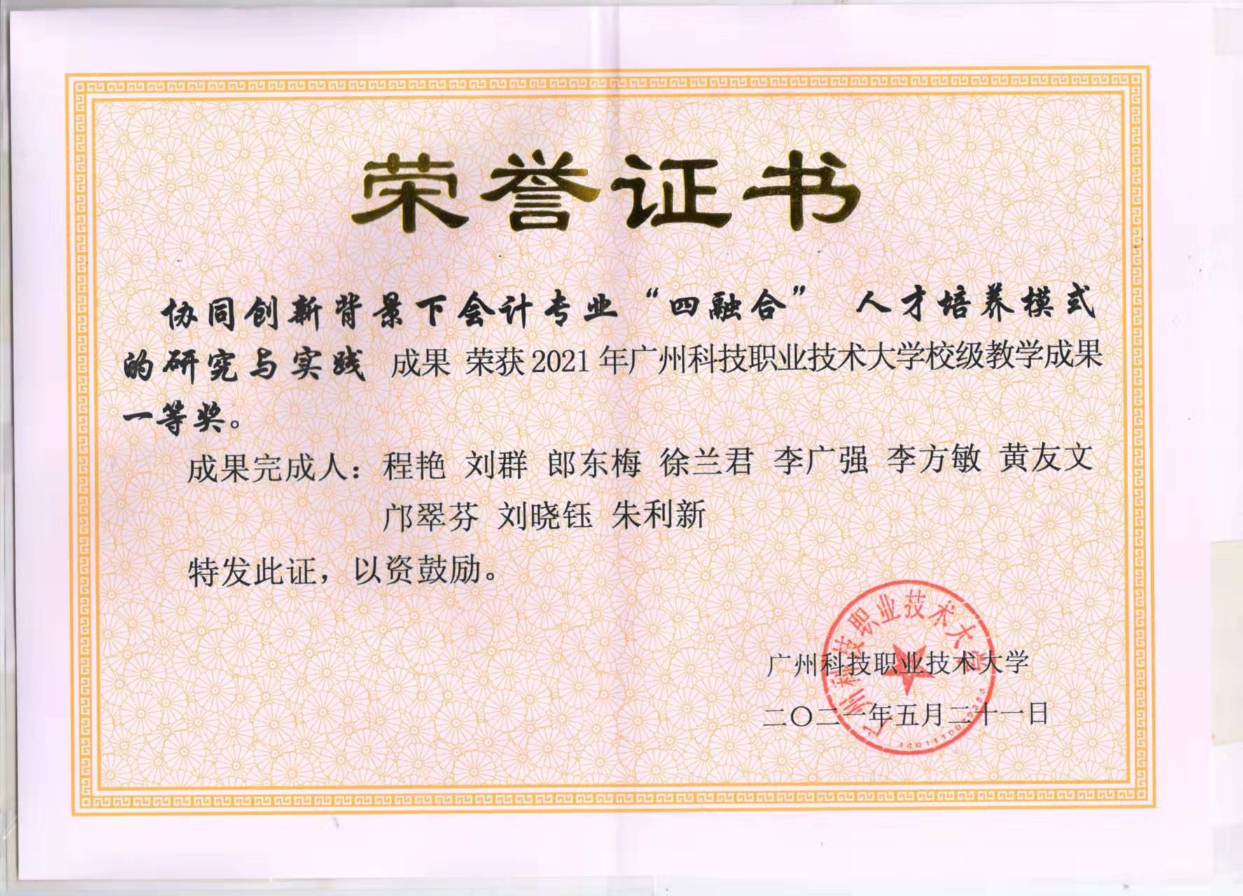4.会计专业教师的整体素质在提高。产学结合的教育方式促使教师不断学习和提高。教学能力和科研能力都有明显提升,所有在职专业教师获得财经专业职业资格证书(会计师、审计师,经济师),大部分老师有1+X职业技能等级培训师资证,在职专业教师中有企业工作经验或经历的比例达80%以上。